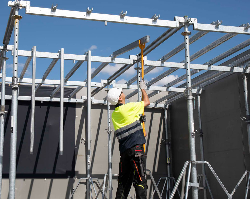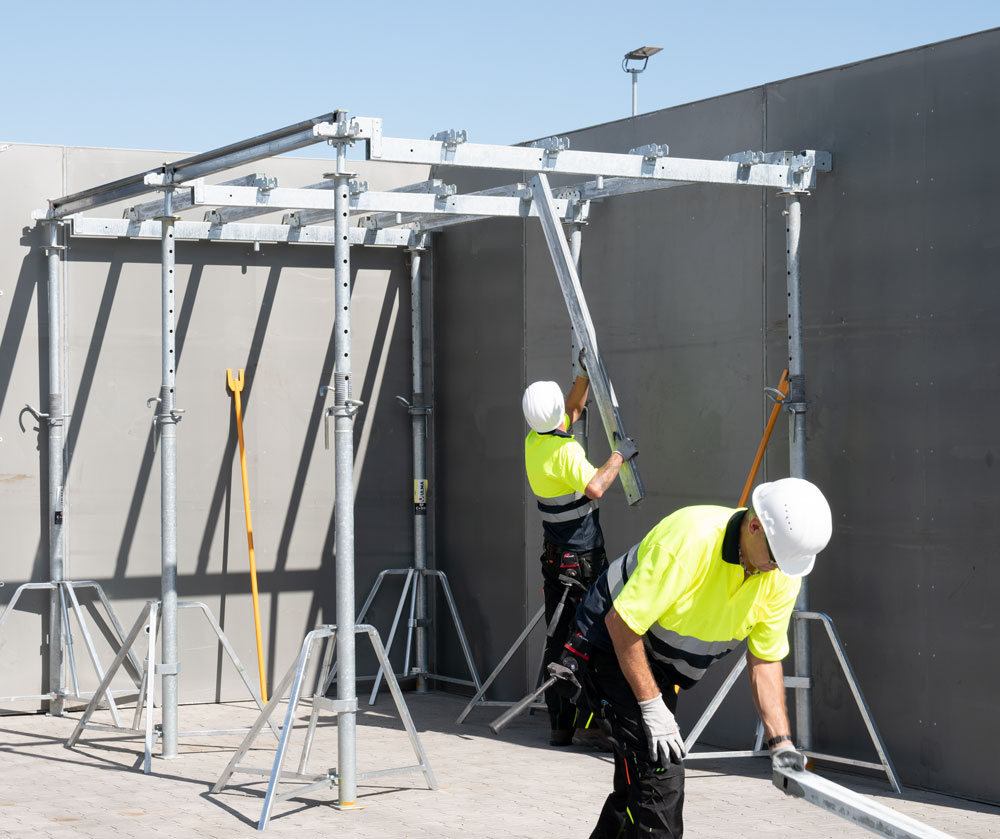 Takket være en modulær og likevel fleksibel oppbygning samt rask og effektiv avforskaling oppnår man bemerkelsesverdige reduksjoner i monterings- og demonteringstidene, samtidig som arbeiderne sikres høye sikkerhetsstandarder.