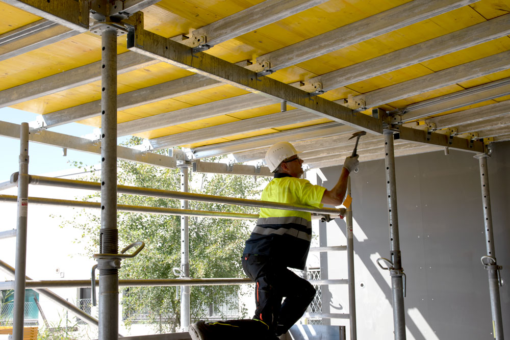 - Inntil 50 % besparelser på utstyr sammenlignet med tradisjonelle trebjelkesystemer, takket være tidlig avforskaling – også på kryssfiner.
